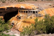 Puente del Inca (Altas Andes)- spectacular view of an abandoned thermal spa overtaken by mineral deposits carried by the Vacas River.