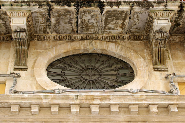 Palace’s simplistic façade sharply contrasts with lavishness of Iblean Baroque omnipresent on every corner of the old city. Out of nine balconies facing the street one clearly stands out thanks to the elegance of the “built-in” wooden-loggia. Designed for members of the family to “see-without-being-seen”, it beautifully blends with the simplicity of palace’s “neo-classical” style.