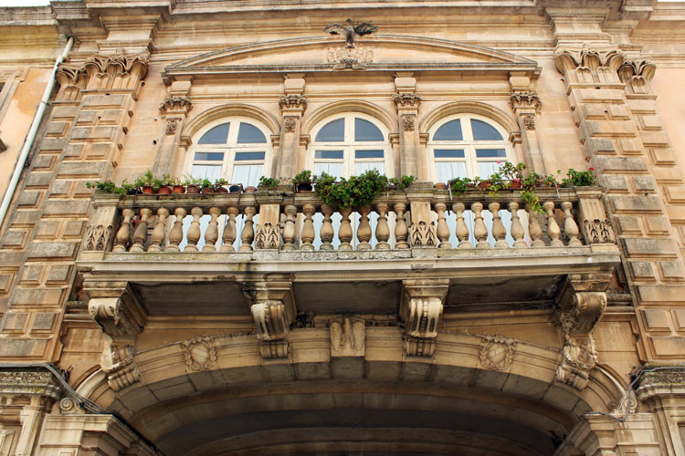 Baroque balcony in the Old Town of Ragusa Ibla