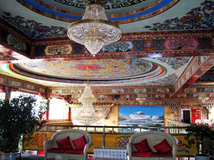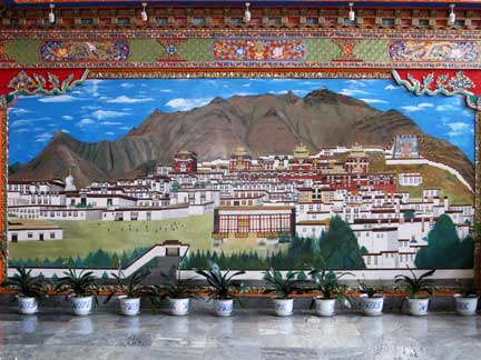 Hotel Shigatse - in the lobby a gigantic painting showing view on Panchen Lama's monastery complex.