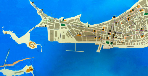 Pedestrian Corso Vittorio Emanuele lined-up with beautiful baroque façade of palaces and churches is undoubtedly the most representative street in the old town. It starts at magnificent Palazza Senatorio (Cavaretta) and leads to Torre di Ligny at the westernmost tip of the peninsula. Along – a display of historical monuments like Church of Jesuits (Chiesa del Collegio dei Gesuiti) , Cathedral of San Lorenzo, Palazzo del Vescovado (Bishop’s Palace), Palazzo Ferro, Palazzo Marini….. (Two blocks to the south from the cathedral there is one more must to see – the Church of Purgatorio).