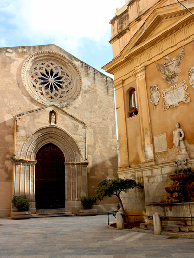 The original church built in 12th century by Templar Knights was dedicated to St. John the Baptist. In 1313, the king Frederic III of Aragon assigned the church to the order of Augustine Fathers. They rebuilt the church in a Sicilian-Gothic style from which we can still admire beautiful frontal rose window and main portal. Interior impresses with several elements of architecture like interlaced arches, columns, polygonal apse, and wooden trusses with paintings displaying grotesque and allegorical scenes derived from medieval life. Numerous pieces of religious artwork from the church are now displayed in Trapani’s Pepoli Museum.