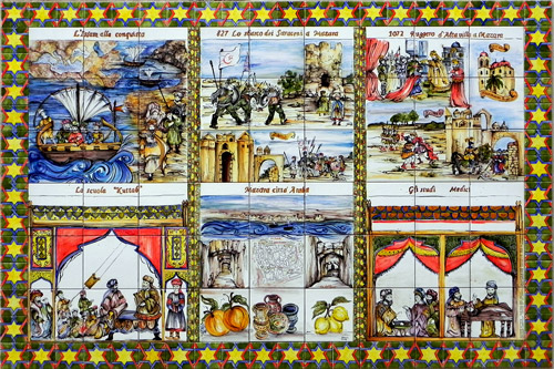 This ceramic plaque presents the short history of Mazara del Vallo under the control of Arabs (Saracens)